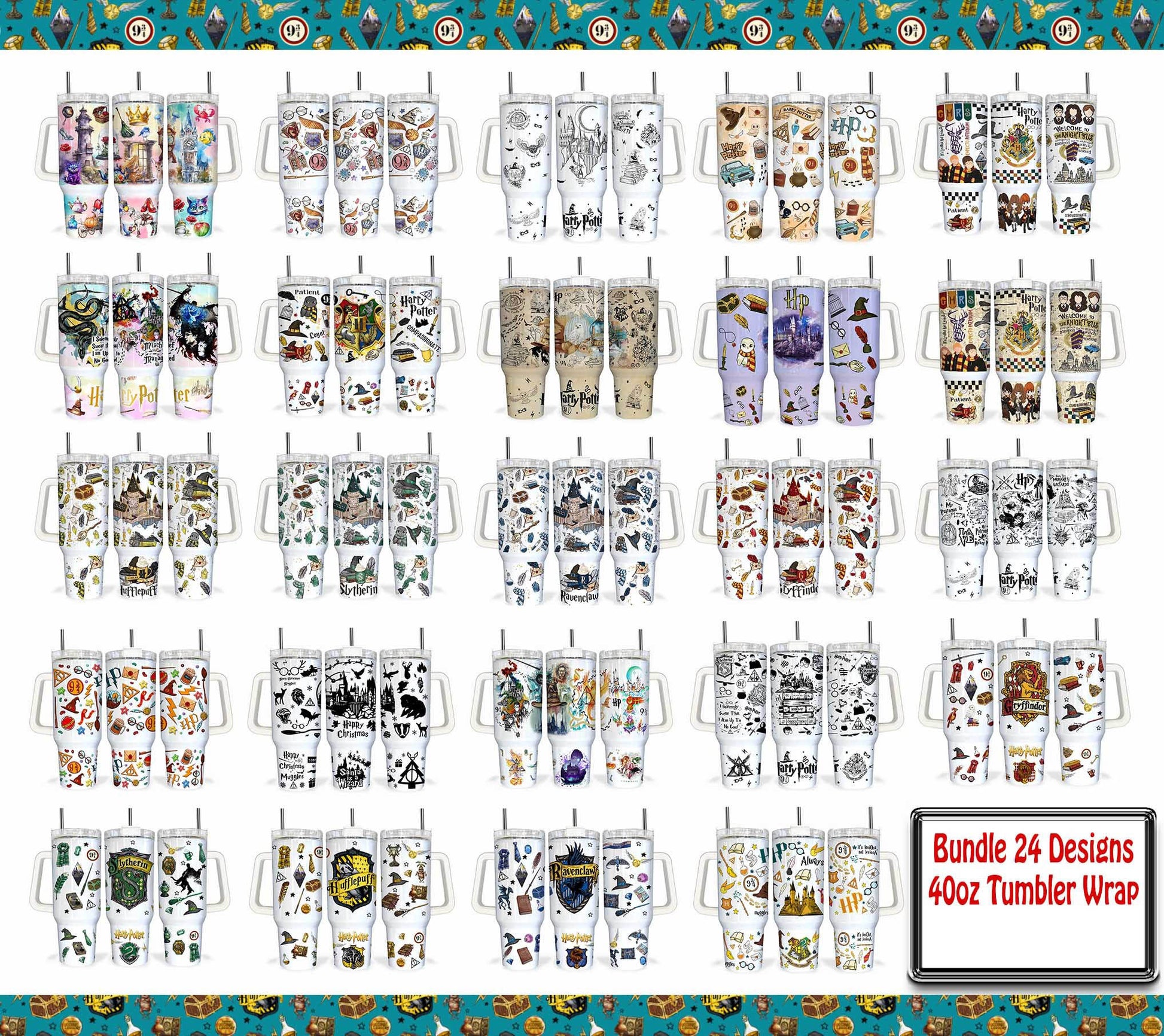 Bundle 25+ Designs Magic 40 oz Tumbler Wrap PNG, HP Quencher Tumbler Sublimation, Wizard Tumbler Png, HP Tumbler Png, HP Wrap